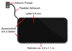 Die Luft wird durch den gelochten Rohrrahmen, der mit der Pumpe verbunden ist, ringsherum gleichmässig abgesaugt |